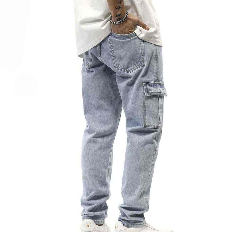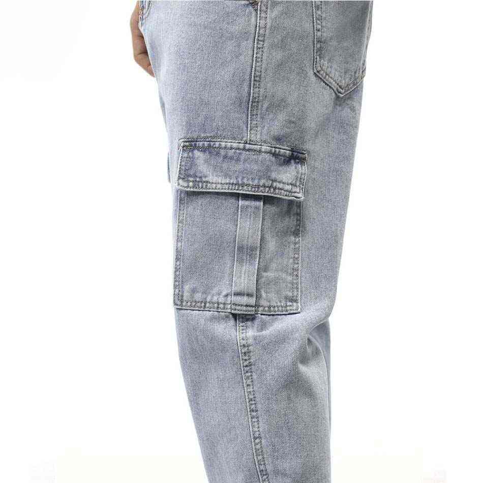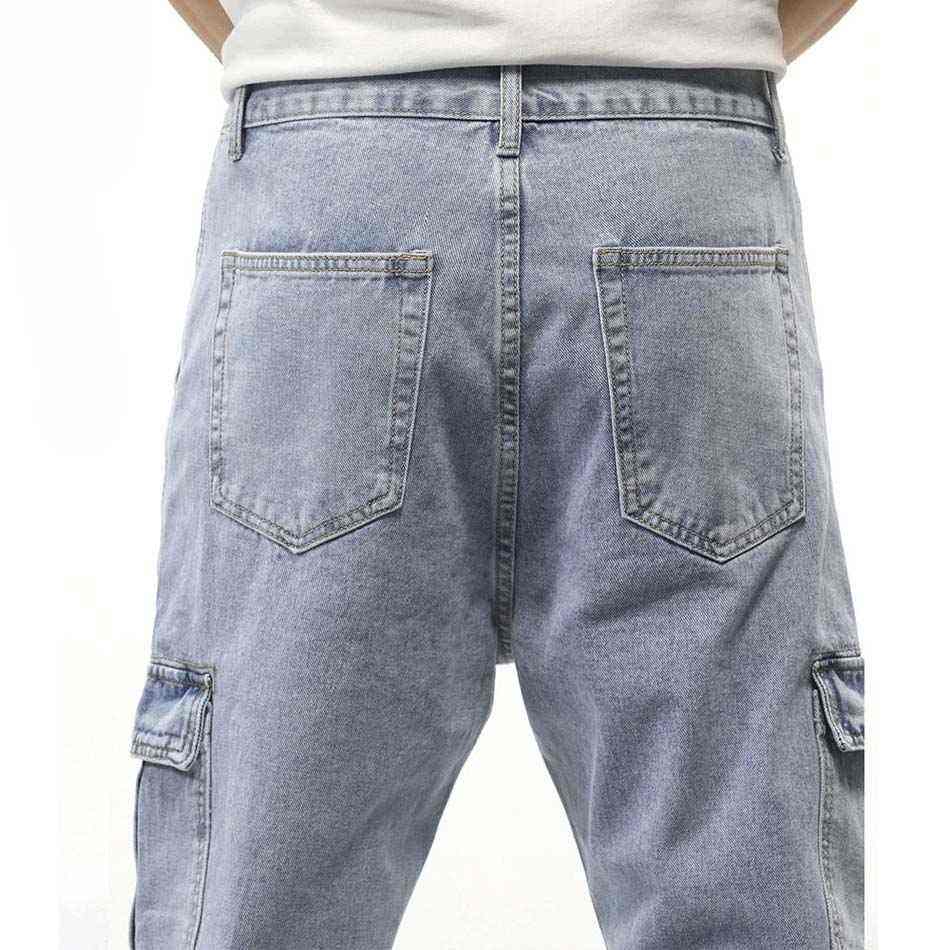 กางเกงยีนส์เดนิมทรงคาร์โก้ผู้ชาย ทรงตรง สวมใส่ได้ทุกวัน แฟชั่นสตรีทแวร์ กางเกงยีนส์ลำลองผู้ชายแบบสั่งทำ