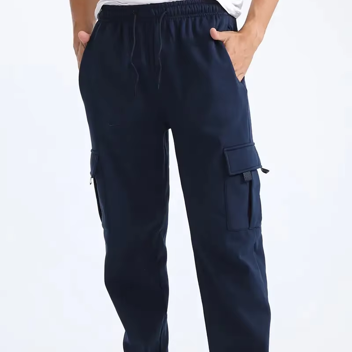 กางเกงคาร์โก้ผู้ชายแบบลำลองมีหลายกระเป๋ากางเกงสีน้ำเงินเข้มซักได้สำหรับกลางแจ้งและชุดลำลองสำหรับฤดูใบไม้ผลิ/ฤดูใบไม้ร่วง
