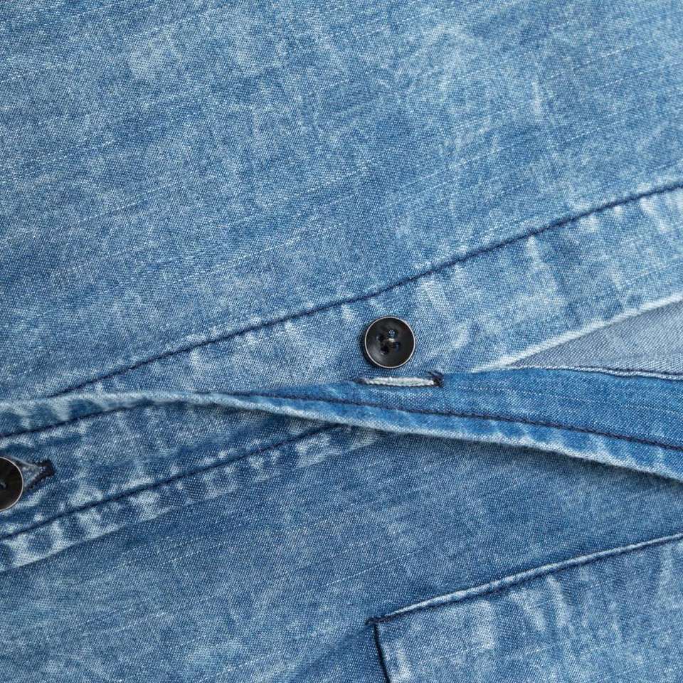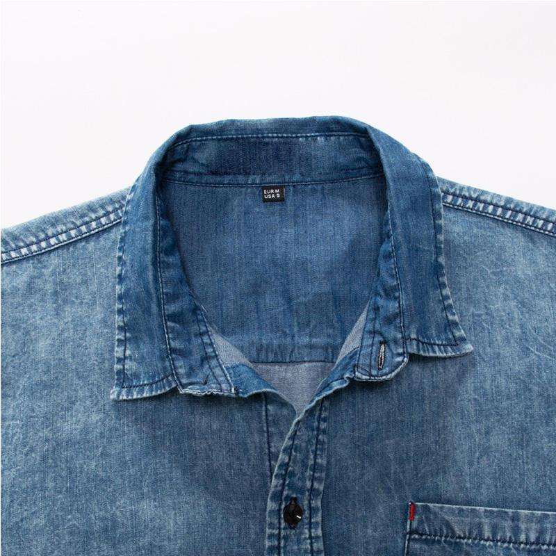 เสื้อยีนส์ผ้าฝ้ายลำลองผู้ชายระบายอากาศกันยับแขนยาวติดกระดุมมีกระเป๋าหน้าอกสำหรับสวมใส่ทุกวันและสไตล์สตรีท