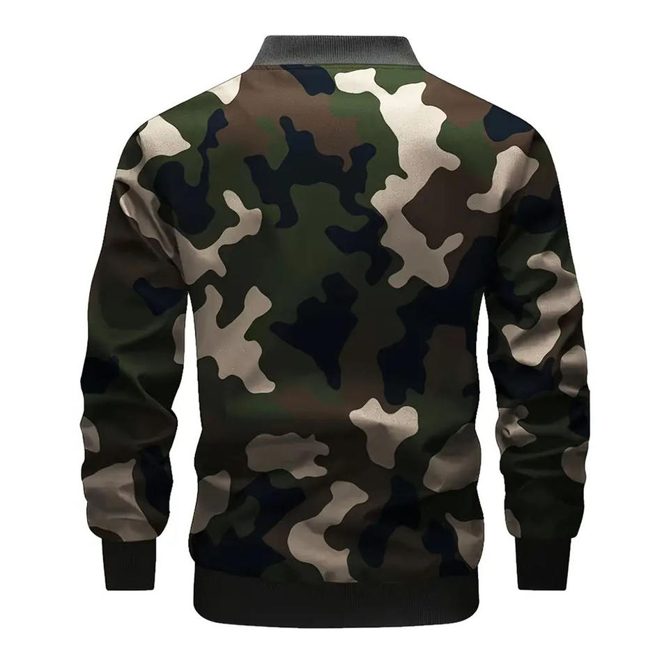 Men Casual Tech-Style Bomber Jacket Lightweight Polyester Varsity Jacket with Shirt Collar Fashionable Camouflage jacket