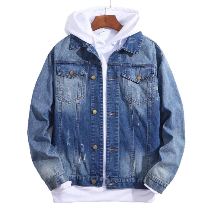 แจ็คเก็ตผ้าเดนิมมีฮู้ดสำหรับผู้ชาย, เสื้อแจ็คเก็ตผ้าฝ้าย100%