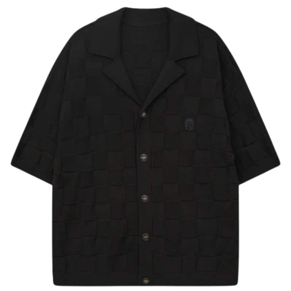 เสื้อเชิ้ตผู้ชายลายตารางถัก แขนสั้น ติดกระดุม ลำลอง สำหรับฤดูร้อน สีดำ รับผลิตตามแบบ (OEM) ขายส่ง