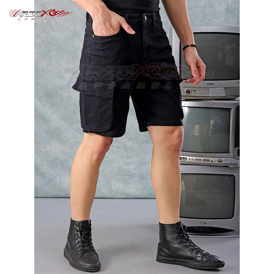 กางเกงยีนส์ขาสั้นลำลองของผู้ชายแบบคลาสสิกพอดีตัวพร้อมซิปด้านข้างและกระเป๋าด้านข้าง