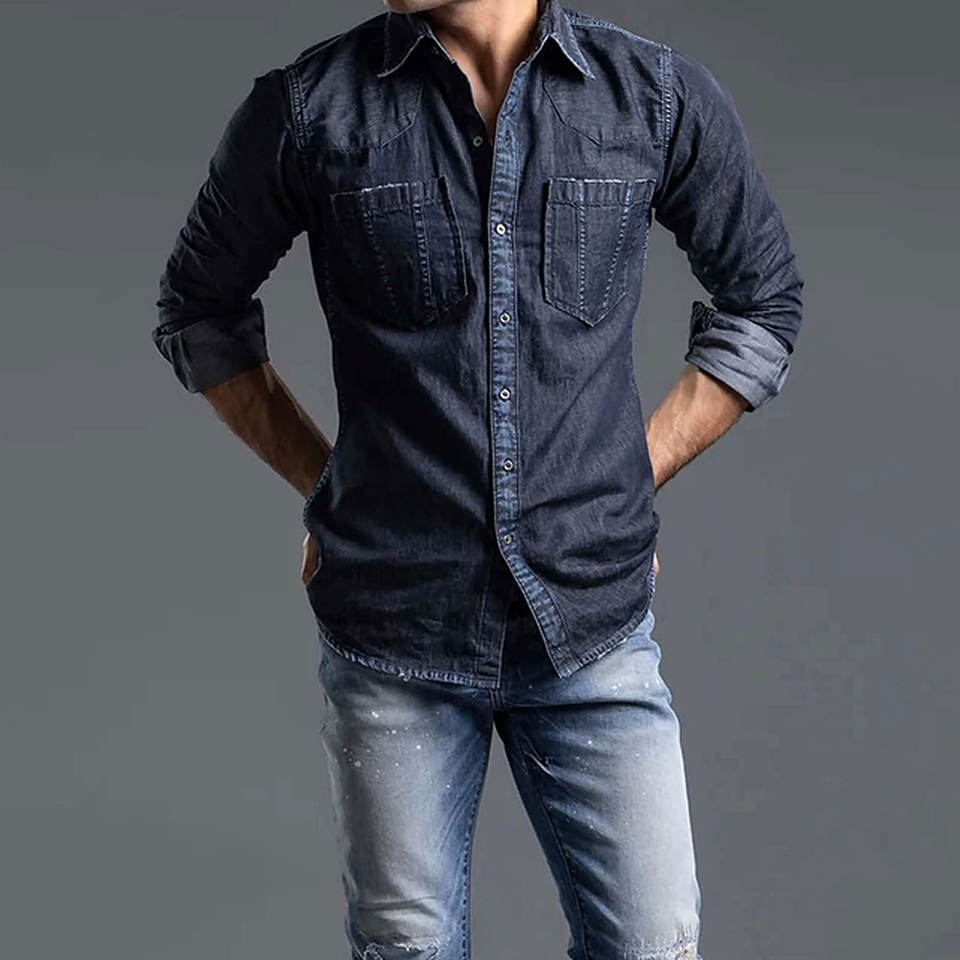 เสื้อเชิ้ตยีนส์ผู้ชายคลาสสิก เสื้อเชิ้ตแขนยาวผ้าฝ้ายนุ่ม เสื้อเชิ้ตยีนส์ผู้ชายทันสมัย เสื้อเชิ้ตทำงานกลางแจ้งทรงเข้ารูป