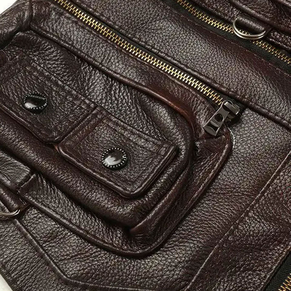 Men Classic MC Leather Club Vest Black Cowhide Motorcycle Biker Waistcoat Multi Pocket Zip Front