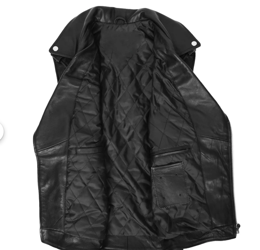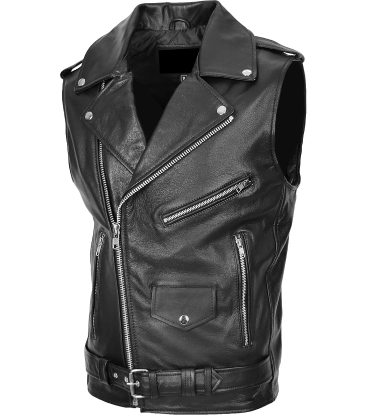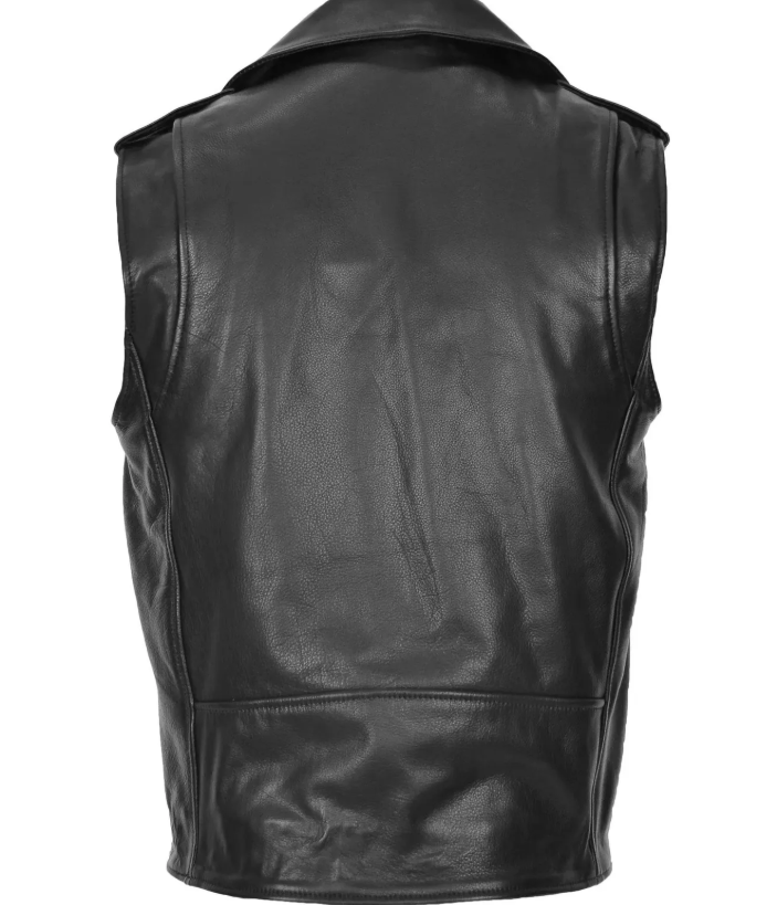 เสื้อกั๊กหนังแท้สีดำสำหรับผู้ชายสไตล์คลาสสิก ทำมือ งานหนังแท้ เสื้อกั๊กไบค์เกอร์ ตัดเย็บพอดีตัว เสื้อกั๊กขี่มอเตอร์ไซค์