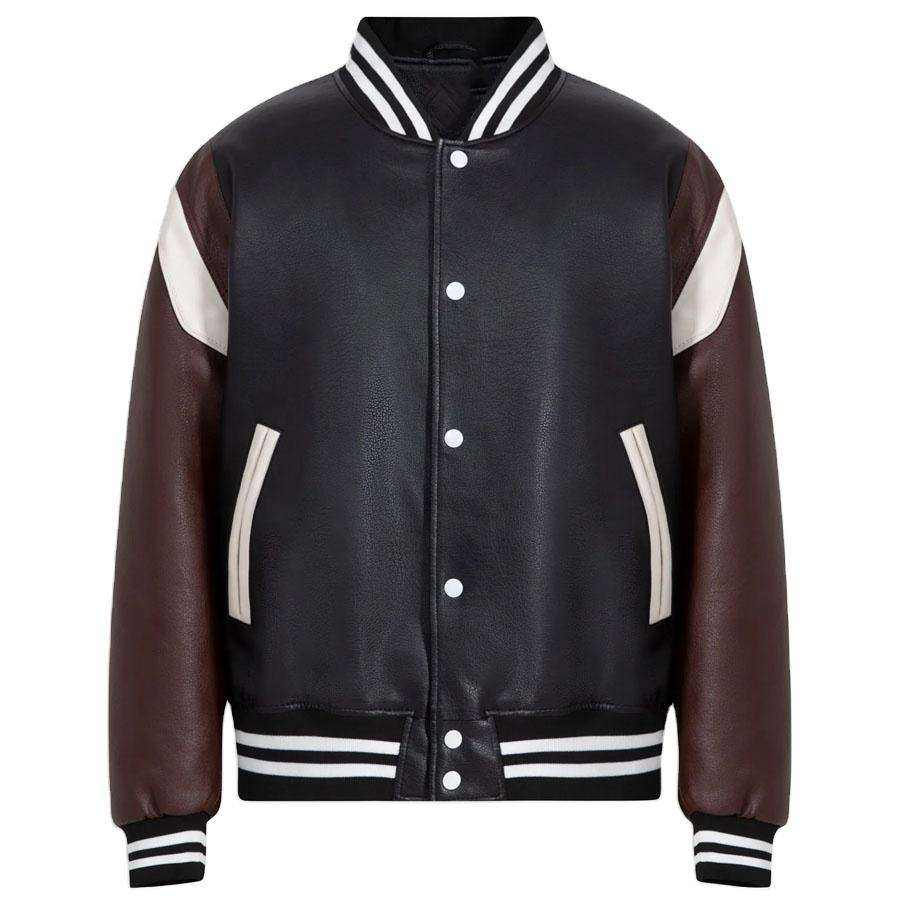 เสื้อแจ็คเก็ตวาร์ซิตี้คลาสสิกสำหรับผู้ชาย ทรงเข้ารูป มีกระเป๋า กระดุมด้านหน้า สไตล์ลำลอง สตรีทแวร์ แบบเบสบอล ตัวอักษรหนัง PU