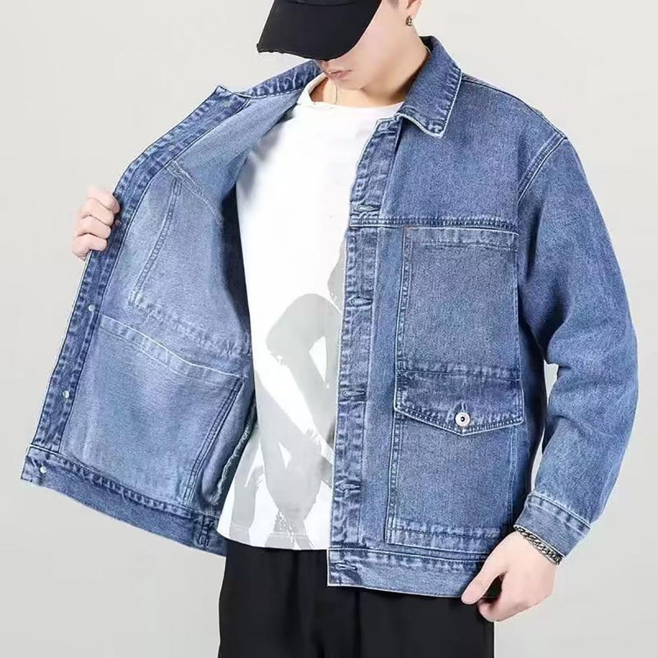 เสื้อแจ็คเก็ตยีนส์ผู้ชายสไตล์วินเทจสำหรับขี่มอเตอร์ไซค์ ขายส่ง แขนยาว แฟชั่นใหม่ ฤดูใบไม้ร่วง ทรงเข้ารูป คุณภาพดี