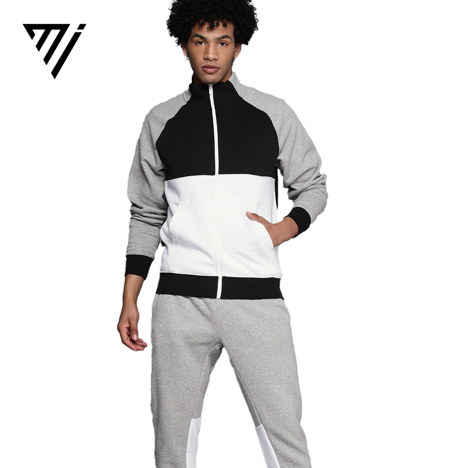 ชุดแทรคสูทผู้ชายแบบมีซิป สีสันตัดกัน สไตล์สตรีทแวร์ แจ็คเก็ตและกางเกงจ็อกเกอร์ สำหรับฤดูหนาว สวมใส่สบาย ผลิตโดย Marfa International