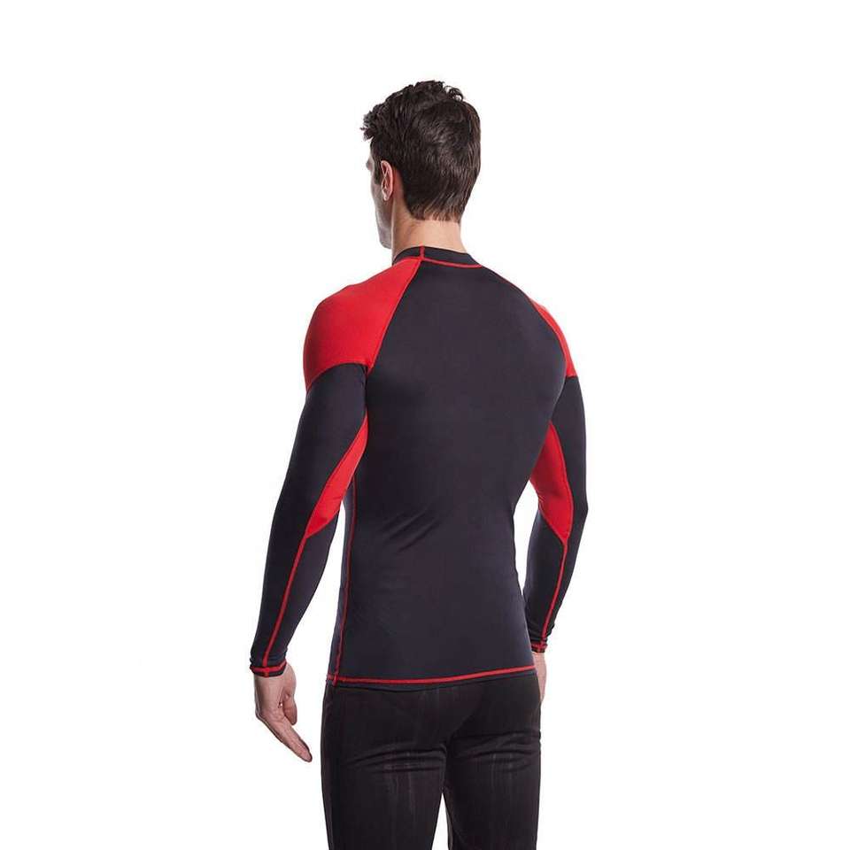 เสื้อรัดรูปแขนเต็มสำหรับผู้ชายชุดว่ายน้ำเสื้อแรชการ์ด BJJ rashguard ผ้าตาข่ายด้านข้างออกแบบโลโก้ได้ตามต้องการไม่มีจีไอสำหรับวิ่ง