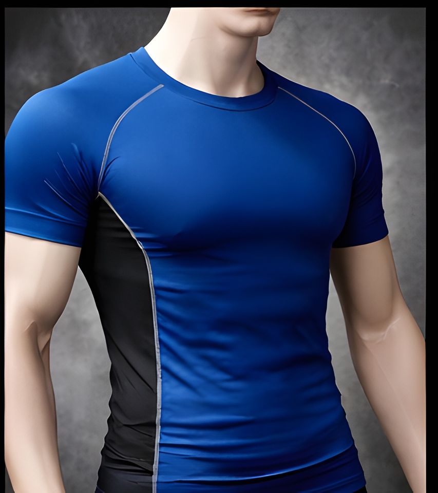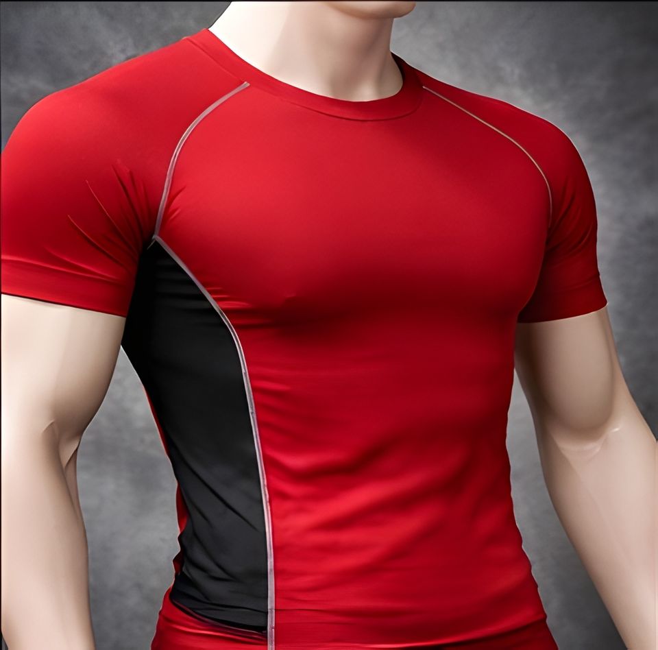 เสื้อยืดออกกำลังกายผู้ชาย ผ้าคอตตอนผสมสแปนเด็กซ์ ยืดหยุ่น ระบายอากาศ กระชับกล้ามเนื้อ แขนสั้น