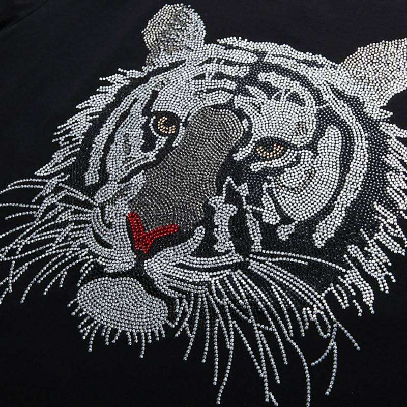เสื้อยืดคอกลมแขนสั้นติดพลอยเทียมสำหรับผู้ชายสีดำสุดเท่เสื้อยืดคอกลมสำหรับผู้ชายเสื้อยืดขายดี