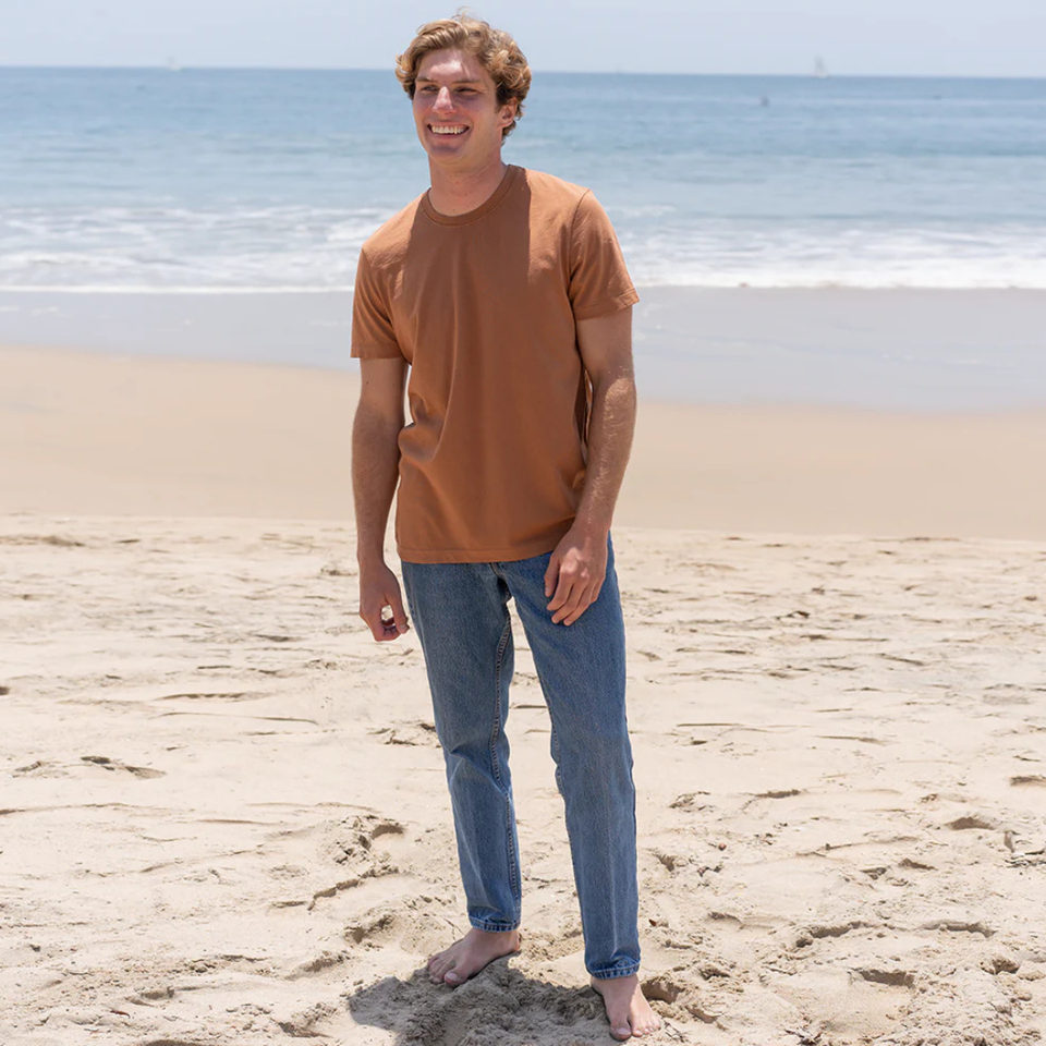 เสื้อยืดคอกลมผู้ชาย ผ้าคอตตอนออร์แกนิค 100% ระดับพรีเมียม ผ่านการรับรอง GOTS ผ้าไม่หด ระบายอากาศได้ดี ทรงพอดีตัว แขนสั้น