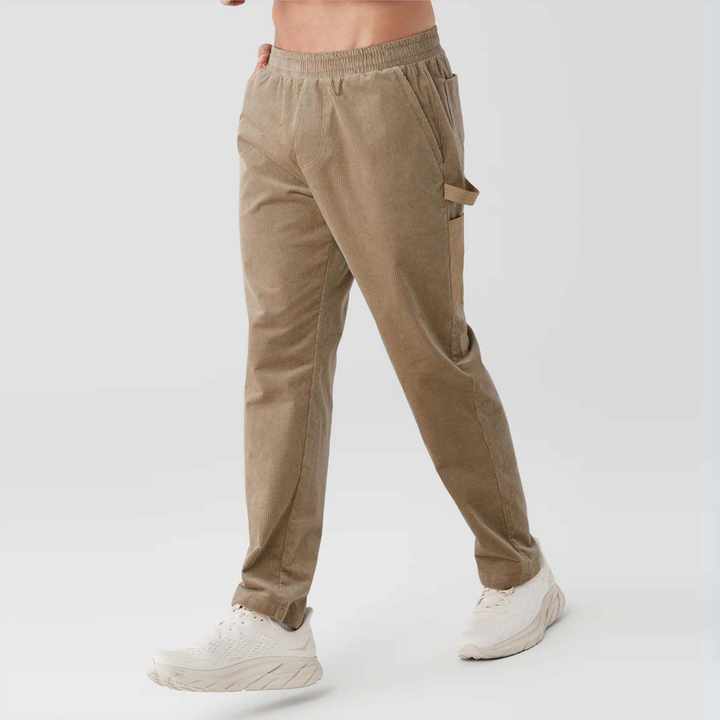 กางเกงคาร์โก้ผ้าลูกฟูกสำหรับผู้ชายพร้อมขอบเอวยางยืดและกระเป๋าหลายช่อง กางเกงลำลองทรงหลวมสำหรับใส่กลางแจ้งและใส่ในชีวิตประจำวัน