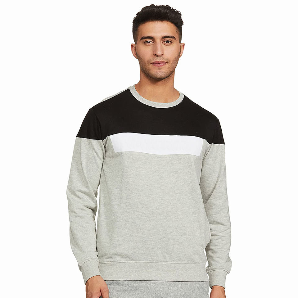 เสื้อสเวตเชิ้ตผู้ชายผ้าคอตตอนผสม สวมใส่สบายสำหรับฤดูหนาว ทรงหลวม แขนยาว คอกลม เหมาะสำหรับใส่ทุกวัน และกำลังลดราคา