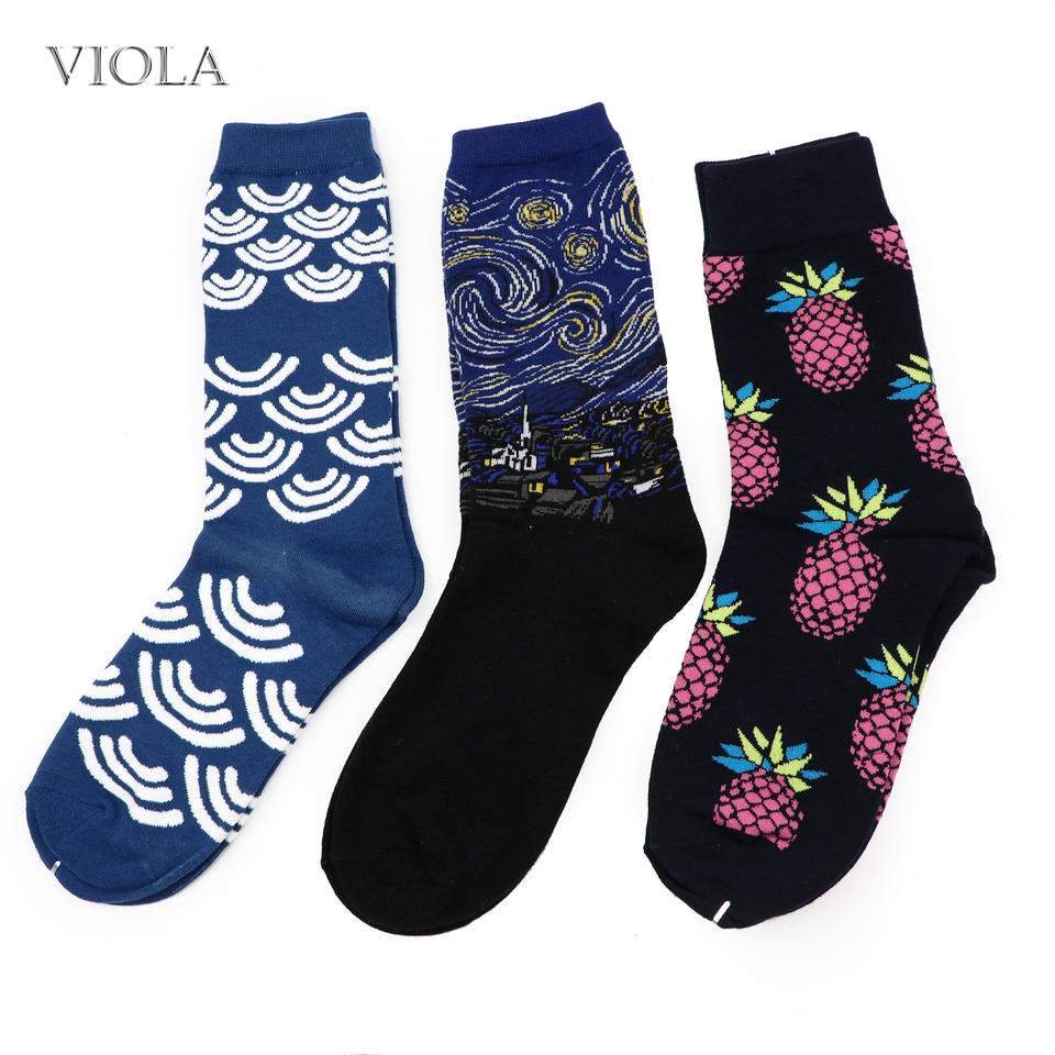 ถุงเท้าผ้าคอตตอนของผู้ชาย,ถุงเท้าลายการ์ตูนตลกๆใส่สบายออกแบบสร้างสรรค์รูปหนอนสับปะรดคลื่นดวงดาวยามค่ำคืนสำหรับฤดูใบไม้ผลิฤดูใบไม้ร่วง