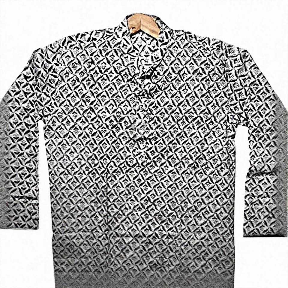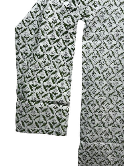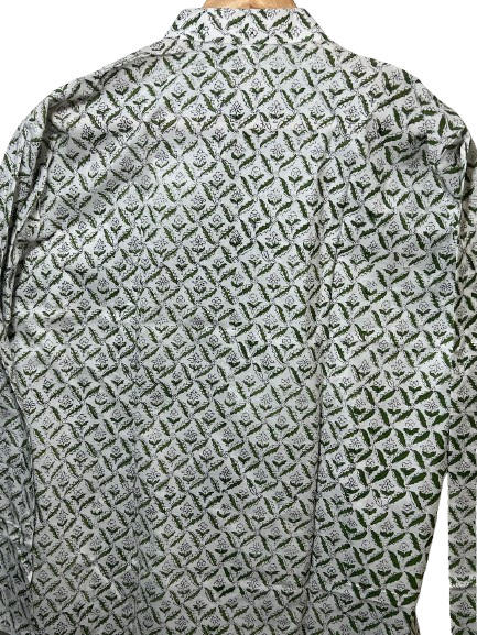 เสื้อคุรตะผ้าฝ้ายลายดอกไม้สำหรับผู้ชายแบบสั้น | แขนยาว | เป็นมิตรกับสิ่งแวดล้อม พิมพ์ลายด้วยมือ | ผ้าอินเดียคุณภาพพรีเมียมในราคาที่สมเหตุสมผล