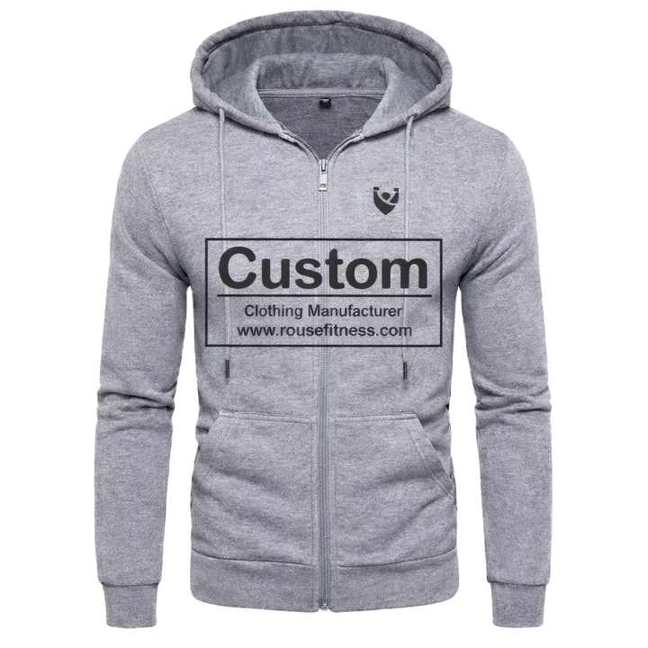 เสื้อฮู้ดผู้ชายผ้าฝ้ายสั่งทำขายส่ง ฤดูใบไม้ร่วง ฤดูหนาว ผ้าฟลีซหนานุ่ม ซิปหน้า สีพื้น ชุดกีฬา