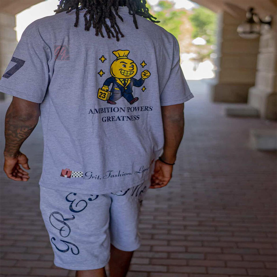 ชุดเสื้อยืดและกางเกงขาสั้นผ้าฝ้ายเจอร์ซีย์สำหรับผู้ชาย 250 GSM ทรงโอเวอร์ไซส์ ระบายอากาศได้ดี ชุดสองชิ้นสำหรับฤดูร้อน