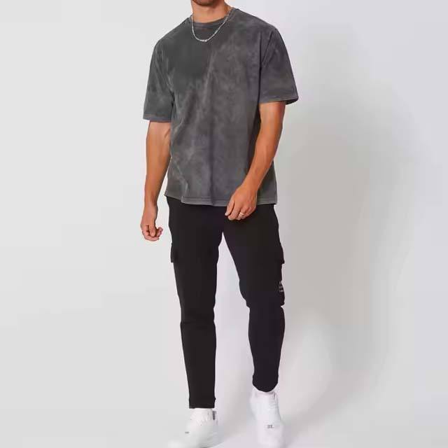 เสื้อโอเวอร์ไซส์ผู้ชายผ้าฝ้ายแขนสั้นลำลองทรงหลวมเสื้อโอเวอร์ไซส์ออกแบบได้ตามที่ต้องการ