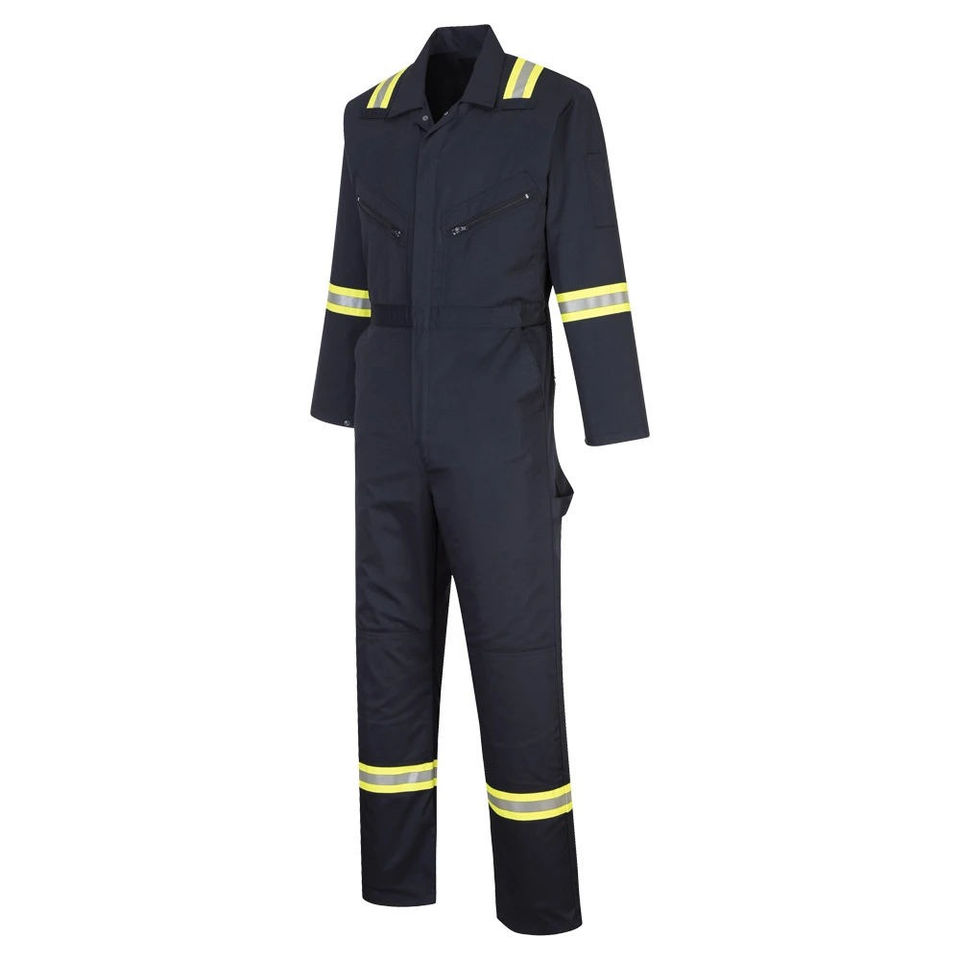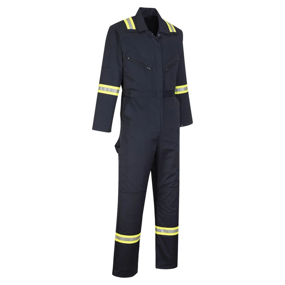 ชุดเอี๊ยมทำงานผ้าฝ้ายสำหรับผู้ชาย แขนยาว ชุดจั๊มสูทช่างแบบชิ้นเดียว มีกระเป๋าคาร์โก้ สวมใส่สบาย ชุดยูนิฟอร์มสำหรับเจ้าหน้าที่รักษาความปลอดภัย มาตรฐาน ANSI Class