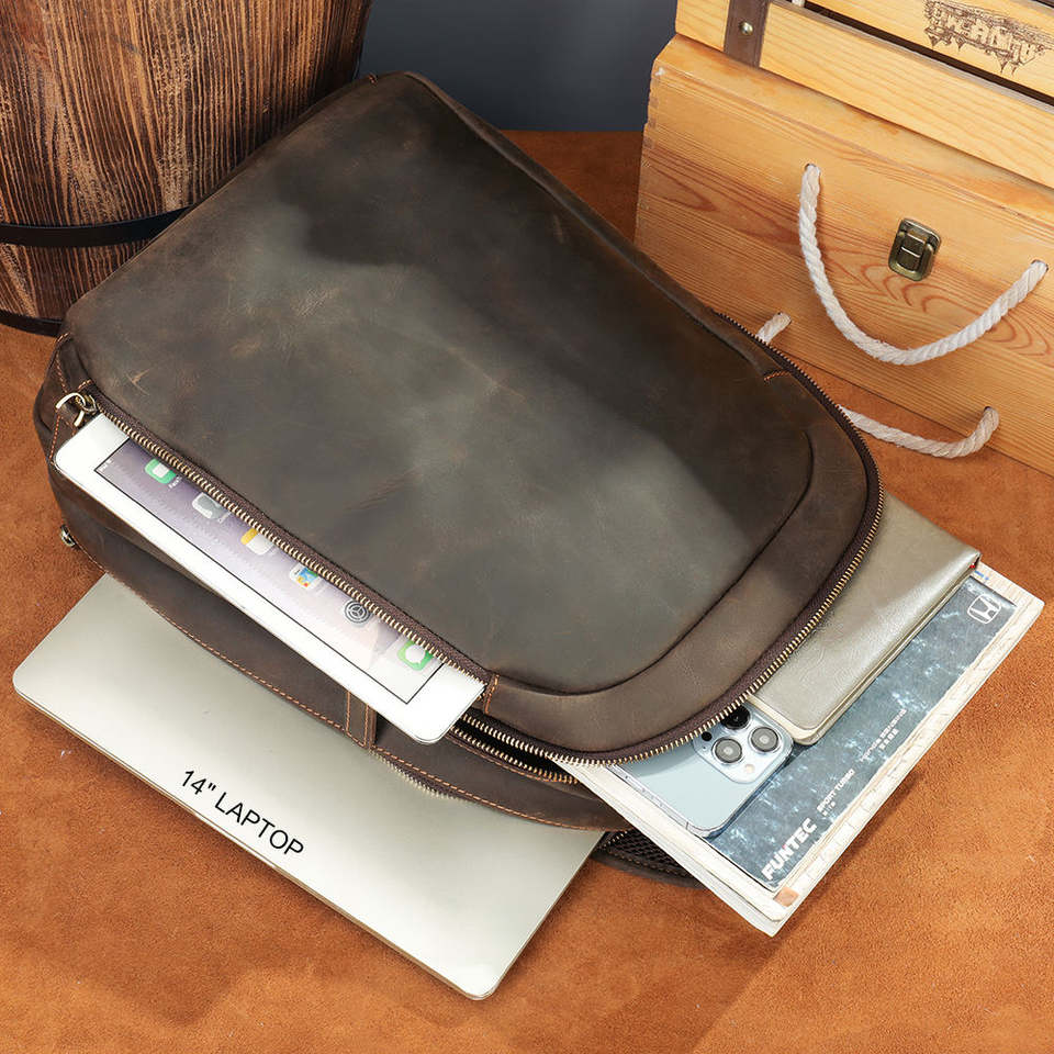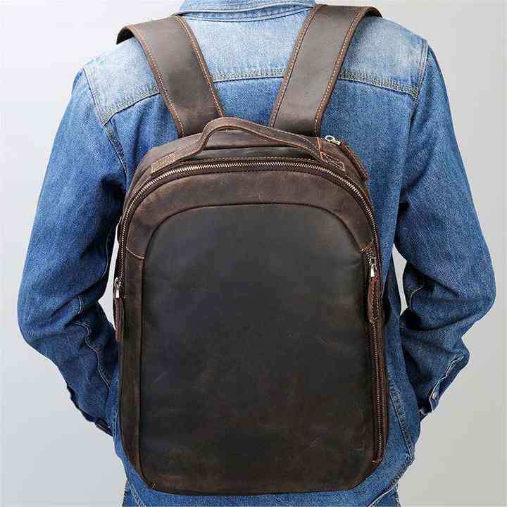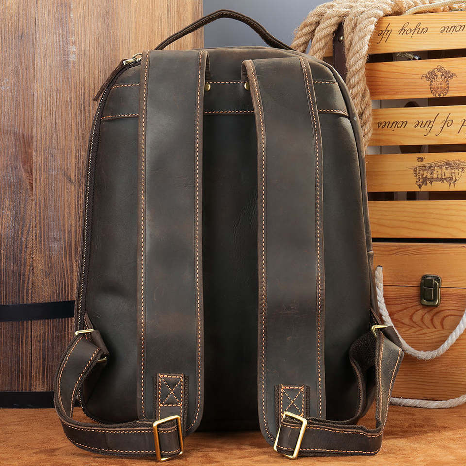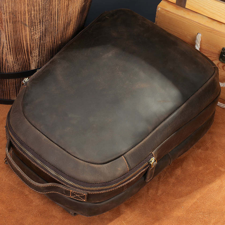 กระเป๋าเป้ผู้ชายหนัง Crazy Horse กันน้ำมีซิปกระเป๋าหนังแท้กระเป๋าเดินทางแล็ปท็อปสไตล์ดีไซเนอร์