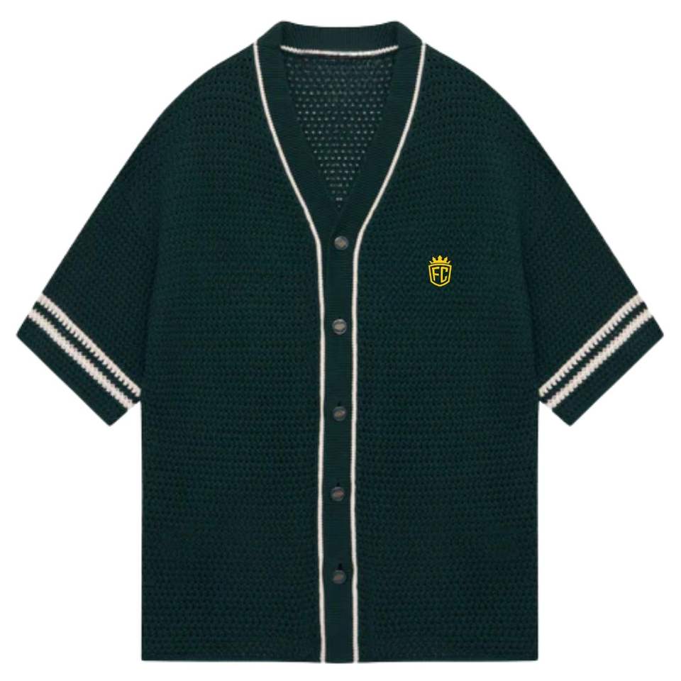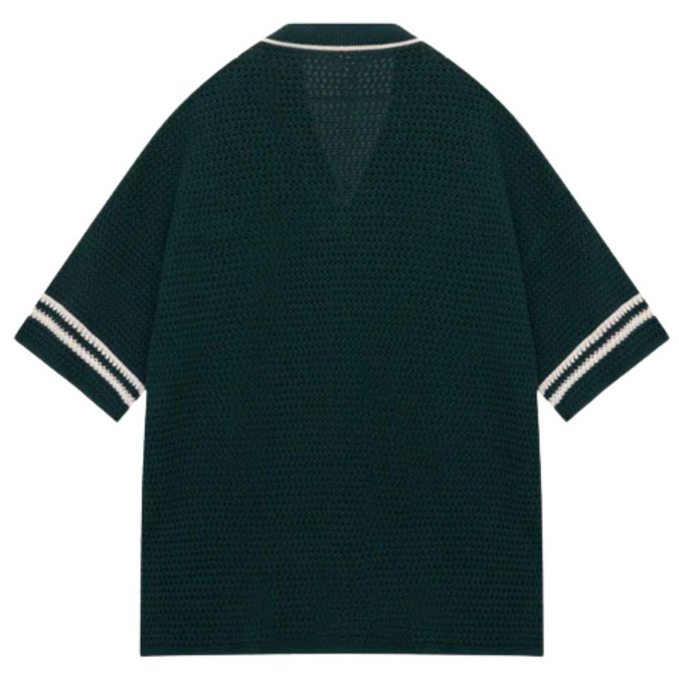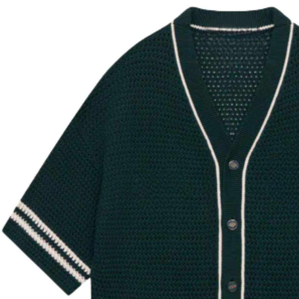 เสื้อเบสบอลถักโครเชต์สำหรับผู้ชาย แขนสั้น ติดกระดุม แต่งลายทาง สไตล์ลำลอง เสื้อถักฤดูร้อน รับผลิตตามแบบ (OEM) ขายส่ง