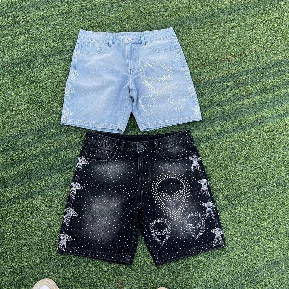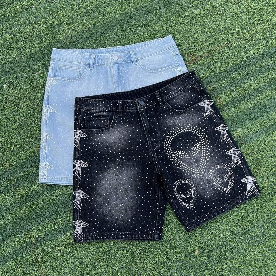 กางเกงขาสั้นผ้าเดนิมลำลองปักลายโลโก้ตามสั่งสำหรับผู้ชาย ผ้าฝ้าย 100% คุณภาพสูง แห้งเร็ว ติดกระดุม ผ้าถักทอ