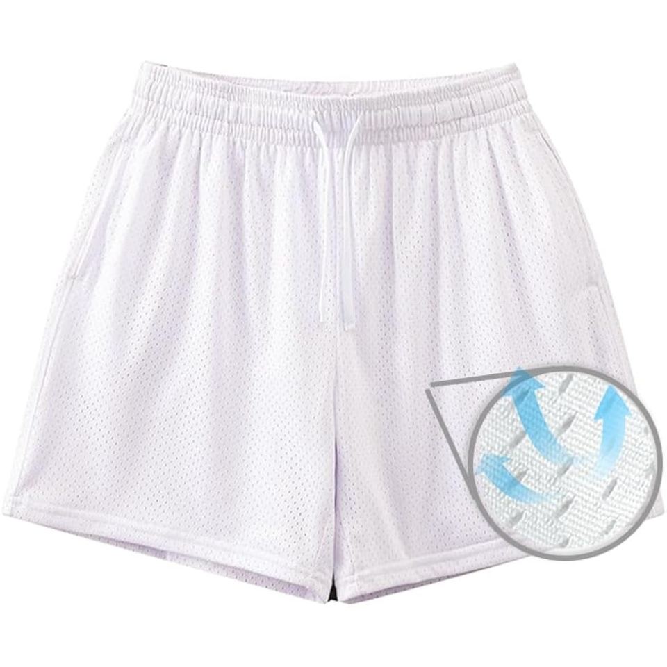 กางเกงขาสั้นออกกำลังกายผ้าตาข่ายสำหรับผู้ชาย พิมพ์โลโก้ได้ น้ำหนักเบา แห้งเร็ว ระบายอากาศดี ดีไซน์สำหรับวิ่งและเล่นกีฬา