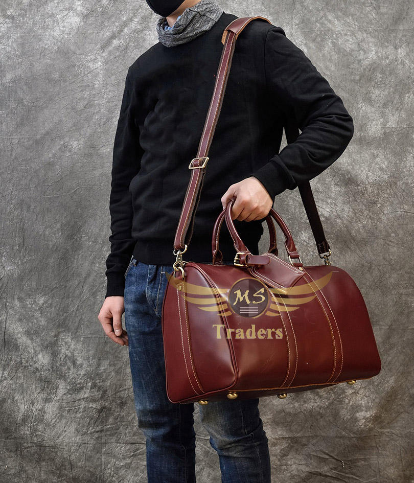 กระเป๋าเดินทางสำหรับผู้หญิงหนังแท้สีแดงไวน์แดงพิมพ์โลโก้ได้ตามต้องการสำหรับผู้ชาย