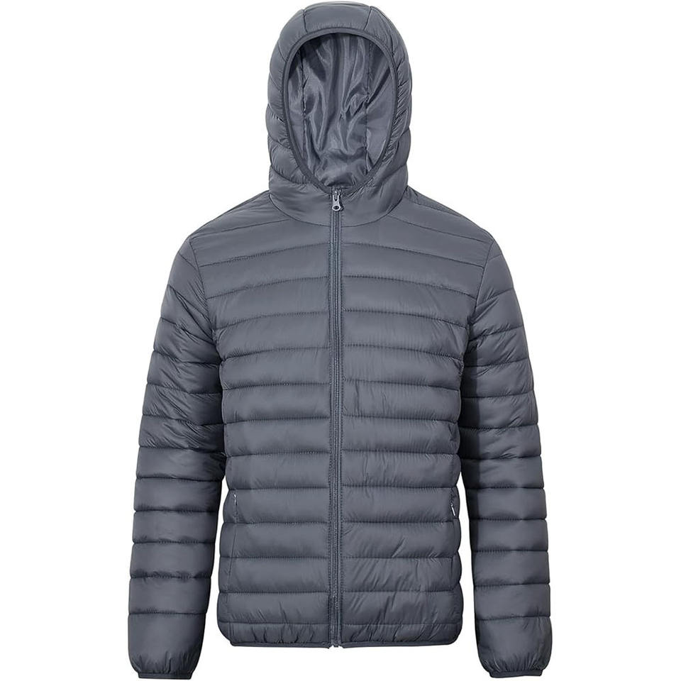 แจ็กเก็ตผ้าไนลอนหนาอบอุ่นมีฮู้ดถอดออกได้สำหรับผู้ชายแจ็คเก็ตบุนวมฤดูหนาวโลโก้ได้ตามต้องการ