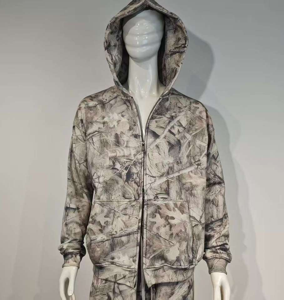 ชุดเซ็ตสเวตสูทซิปแบบสตรีทแวร์ทรงโอเวอร์ไซส์สั่งตัดสำหรับผู้ชาย และกางเกงจ็อกเกอร์ผ้าถักหนา 100% ผ้าฝ้าย