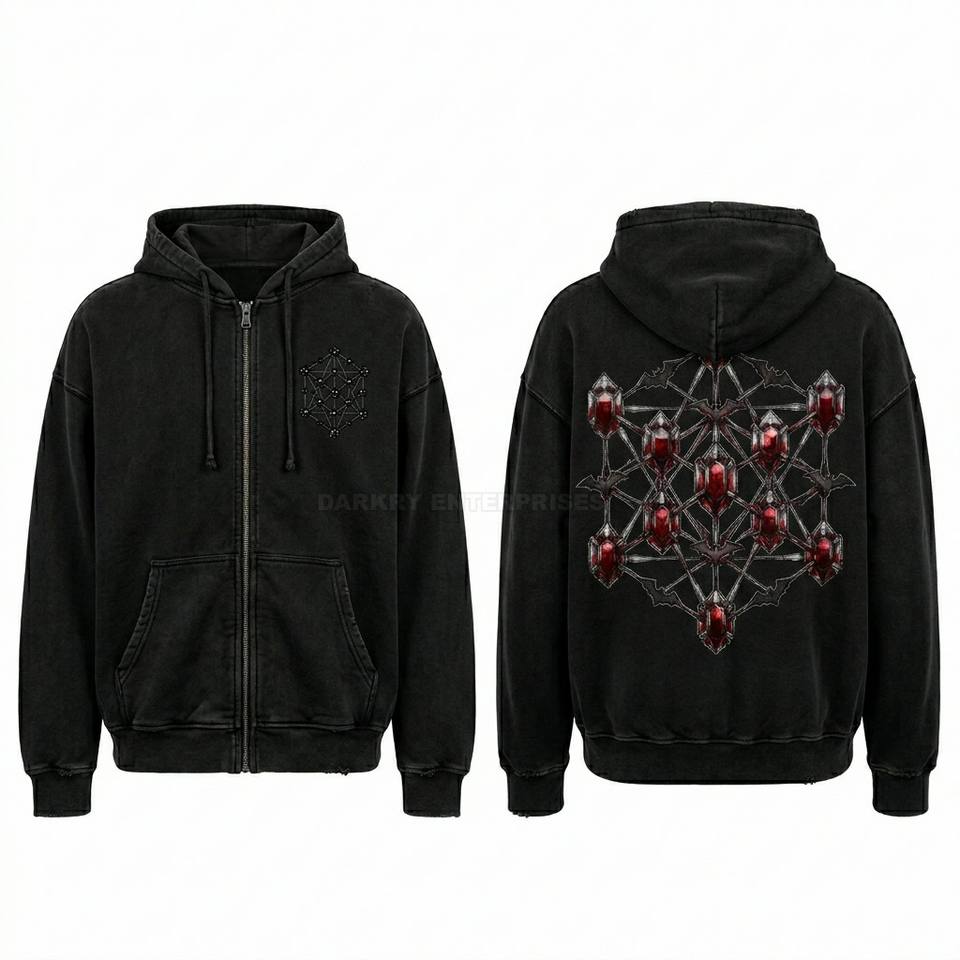 เสื้อฮู้ดดี้ผู้ชายสีกรมท่าลายกราฟิกกอธิคคลาวด์แอตลาส พิมพ์ลายวินเทจ ซักนุ่ม หนานุ่ม ทรงโอเวอร์ไซส์ สตรีทแวร์ ผลิตโดยผู้ผลิตเสื้อฮู้ดดี้