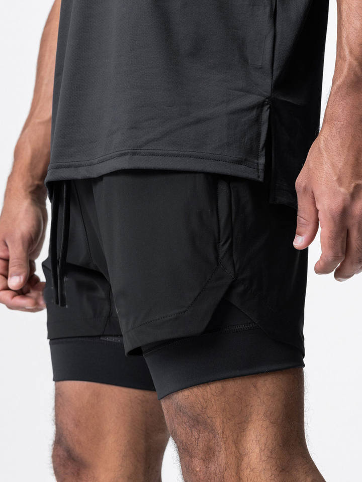 กางเกงวิ่งผู้ชายแบบ 2 in 1 คุณภาพสูง ผลิตจากโพลีเอสเตอร์ รับผลิตแบบ OEM