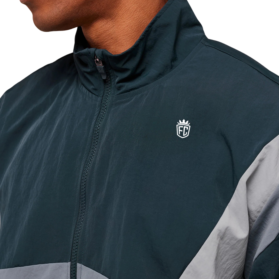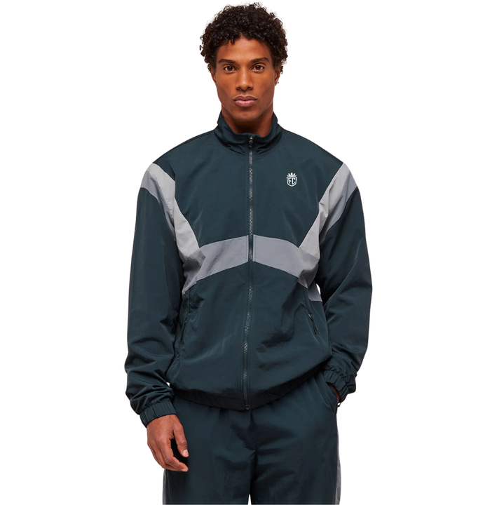 เสื้อแจ็คเก็ตแทร็คสีน้ำเงินเข้มสไตล์เรโทรทรงโอเวอร์ไซส์ ซิปเต็มตัว สำหรับเล่นกีฬา วิ่ง ออกกำลังกาย ลำลอง ป้องกันลม