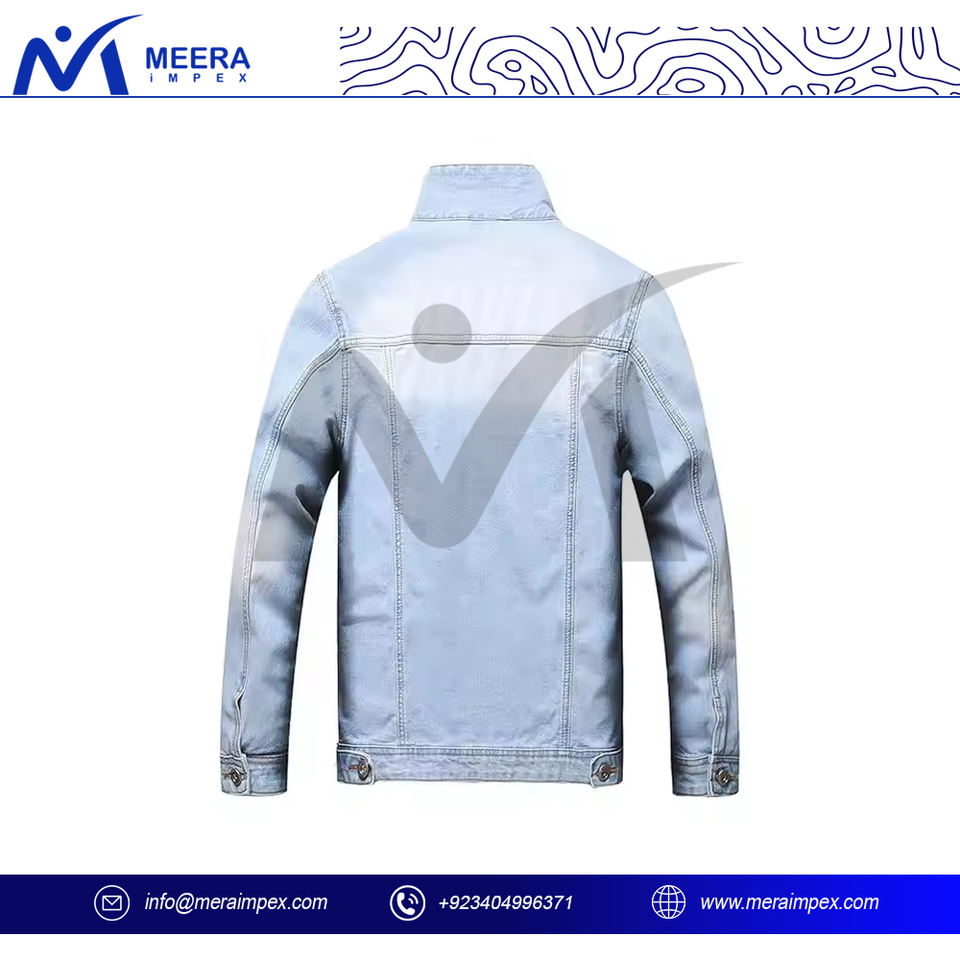 แจ็กเก็ตยีนส์สีน้ำเงินเข้ารูปสำหรับผู้ชายเสื้อแจ็กเก็ตยีนส์สีน้ำเงินสไตล์วินเทจ