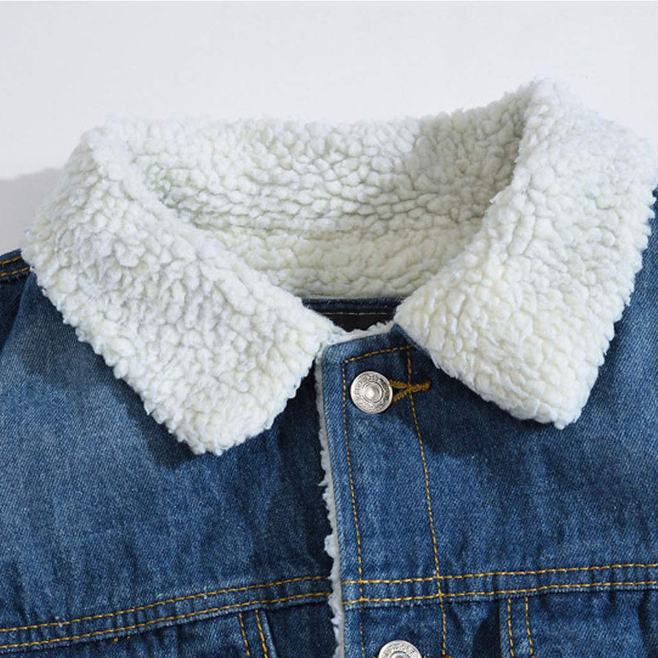แจ็กเก็ตยีนส์บุผ้าเชอร์ปาสำหรับผู้ชายใส่สบายเสื้อแจ็กเก็ตสำหรับใส่สบายและอากาศเย็นมีสไตล์สำหรับฤดูใบไม้ร่วง