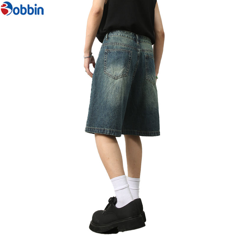 กางเกงยีนส์ขาสั้นผู้ชาย ทรงหลวม สไตล์เรโทร มีซิปและกระดุม แฟชั่นลำลองสำหรับกิจกรรมกลางแจ้ง