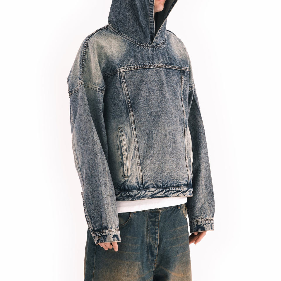เสื้อฮู้ดผ้ายีนส์ผู้ชายสั่งทำพิเศษ