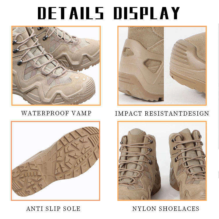 รองเท้าบูทผู้ชายแบบทะเลทราย รองเท้าหนังสีน้ำตาล สีดำ รองเท้าบูทคอมแบท รองเท้าบูทเดินป่า