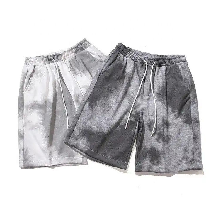 กางเกงขาสั้นผู้ชายผ้าเปียกเปียกแบบเชือกรูดผ้าคอตตอนเทอร์รี่ผ้าฝ้ายแนวสตรีทพิมพ์ลายกรดออกแบบได้ตามต้องการ