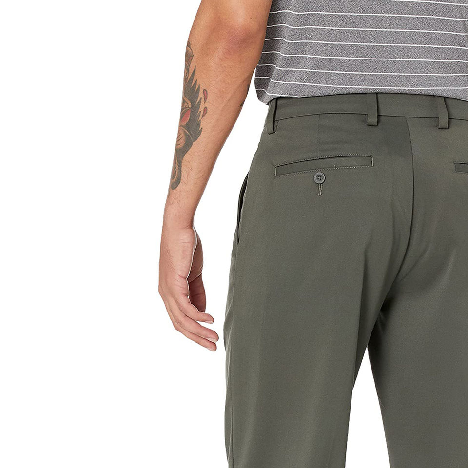 ชุดเดรสสำหรับผู้ชายกางเกงผ้าคอตตอน/โพลีเอสเตอร์ด้านหน้าทรงตรงแบบเรียบพร้อมบริการ OEM