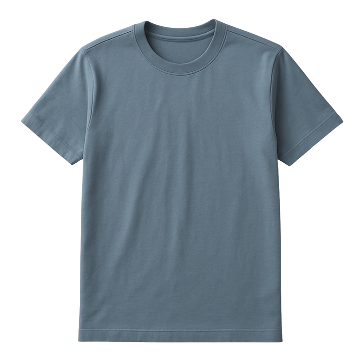 เสื้อยืดคอกลมผู้ชาย สีน้ำเงินเข้ม 100% ผ้าฝ้ายออร์แกนิค ระดับพรีเมียม ผ่านการรับรอง GOTS ผ่านกระบวนการหดตัวแล้ว ระบายอากาศได้ดี แขนสั้น