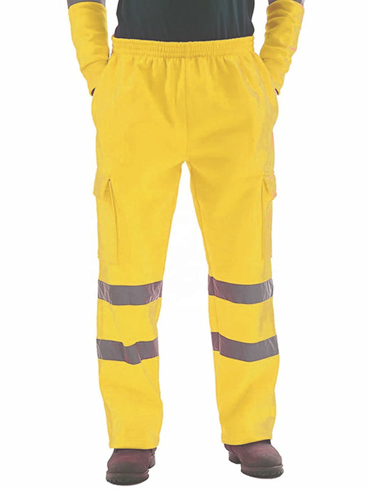 กางเกงเอวยางยืดสำหรับผู้ชายกางเกงเซฟตี้สะท้อนแสงมองเห็นได้ชัดเจนกางเกงใส่ทำงานกลางแจ้ง