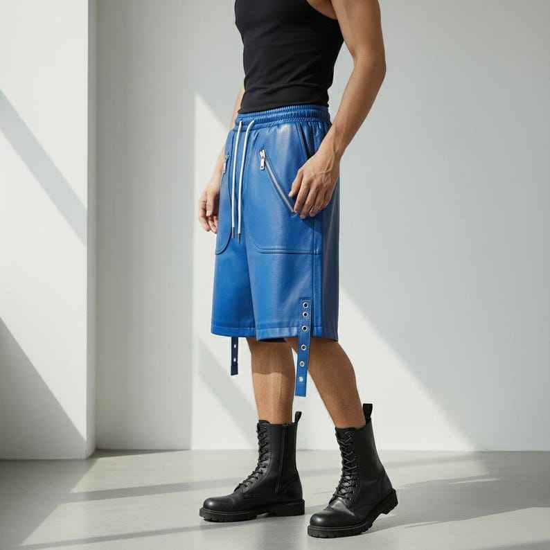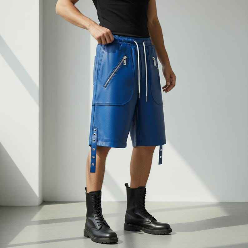 กางเกงขาสั้นผู้ชายสีน้ำเงิน ผ้าฝ้ายลำลอง เอวกลาง ทรงวินเทจ ระบายอากาศได้ดี แห้งเร็ว ถักทอด้วยมือ พร้อมเชือกผูกเอว ซิปสูง