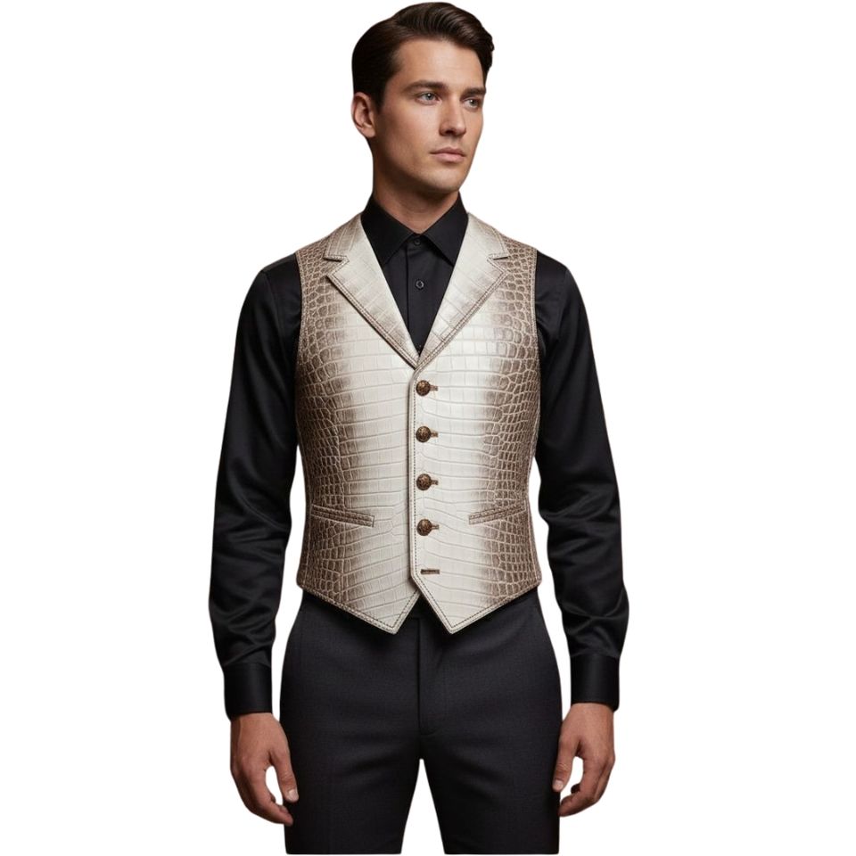 เสื้อกั๊กหนังลายจระเข้สำหรับผู้ชาย แฟชั่นใหม่ ระบายอากาศได้ดี สวมใส่สบายสำหรับฤดูหนาว สไตล์ล่าสุด คุณภาพสูง