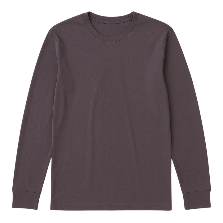 เสื้อยืดคอกลมแขนยาวผู้ชาย สีม่วงซีด ผ้าฝ้ายออร์แกนิค 100% ระดับพรีเมียม ผ่านการรับรอง GOTS ผ้าไม่หด ระบายอากาศได้ดี