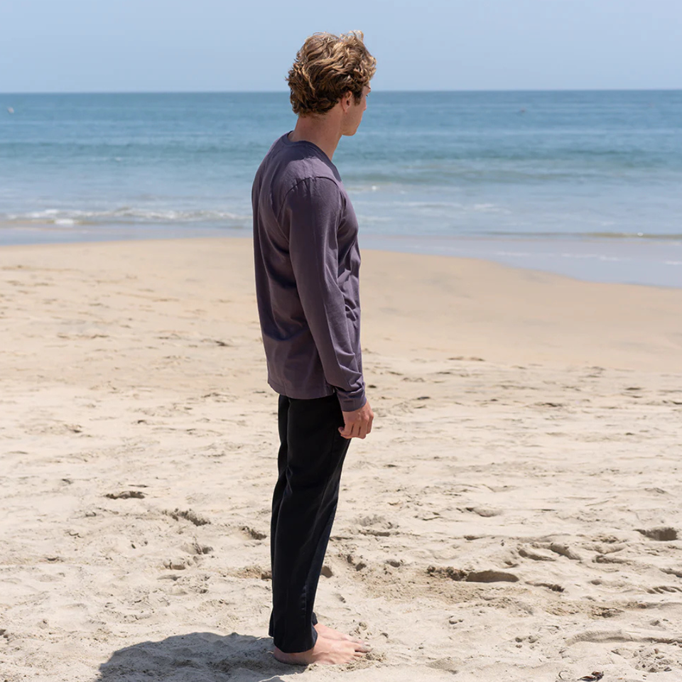 เสื้อยืดคอวีแขนยาวผู้ชาย สีม่วงซีด ผ้าฝ้ายออร์แกนิค 100% ระดับพรีเมียม ผ่านการรับรอง GOTS ผ้าไม่หด ระบายอากาศได้ดี ทรงพอดีตัว