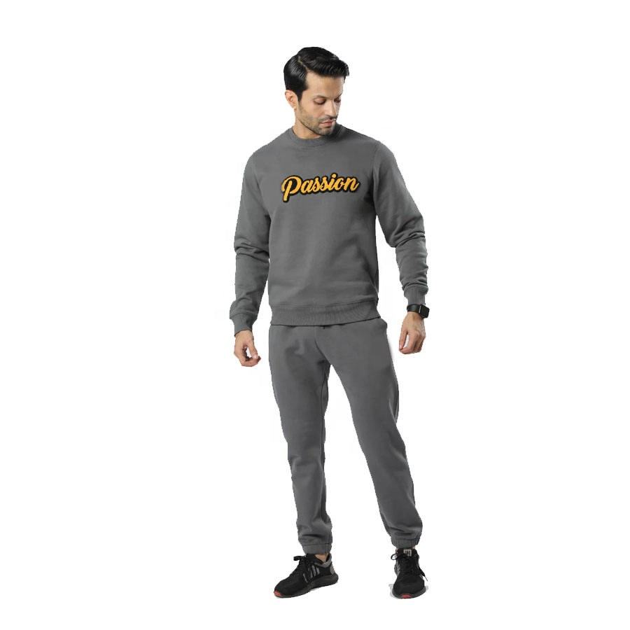 ชุด2ชิ้นเสื้อสวมหัวคอกลมแฟชั่นสำหรับผู้ชายชุดวอร์มคอกลมปักโลโก้2ชิ้น