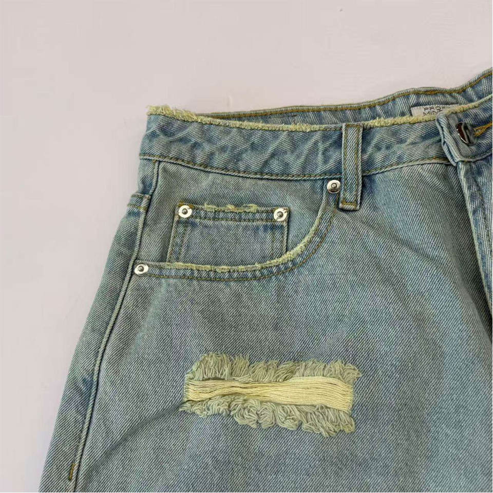 กางเกงขาสั้นผู้ชายสไตล์ดิสเทรส ลุคซักฟอก ทันสมัย ใส่สบาย เหมาะสำหรับใช้ในชีวิตประจำวัน